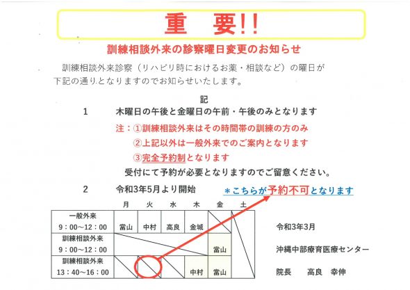 訓練相談外来の重要なお知らせ!